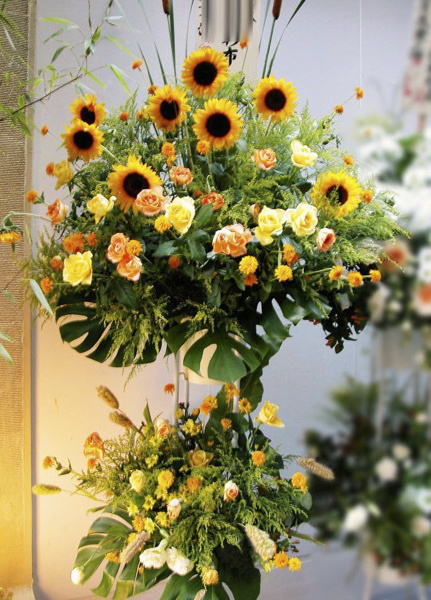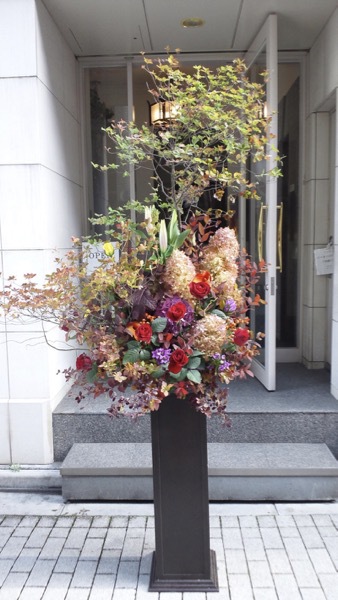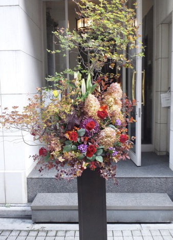 紅葉の枝や秋色アジサイを入れて、壇上に季節感を。